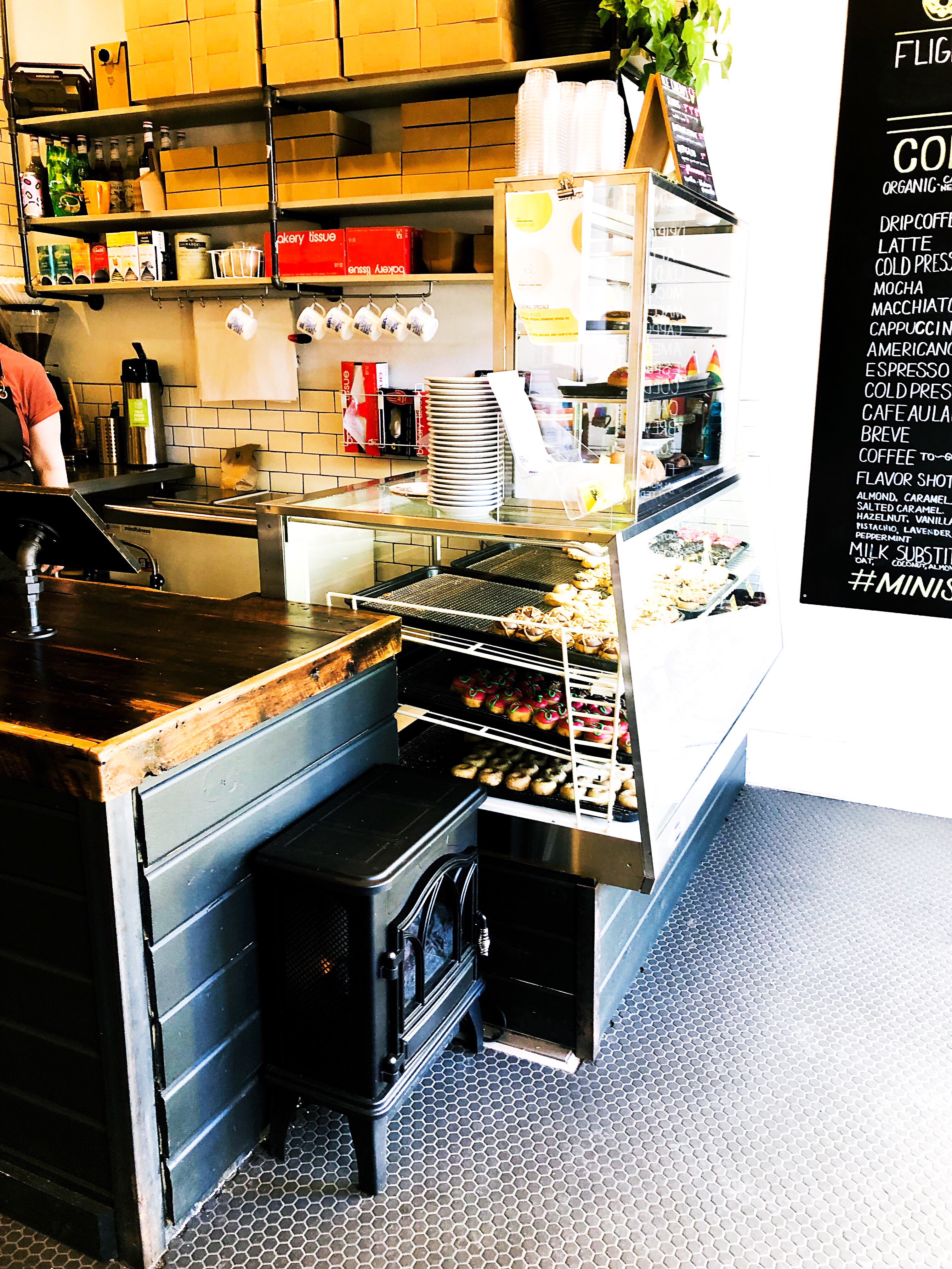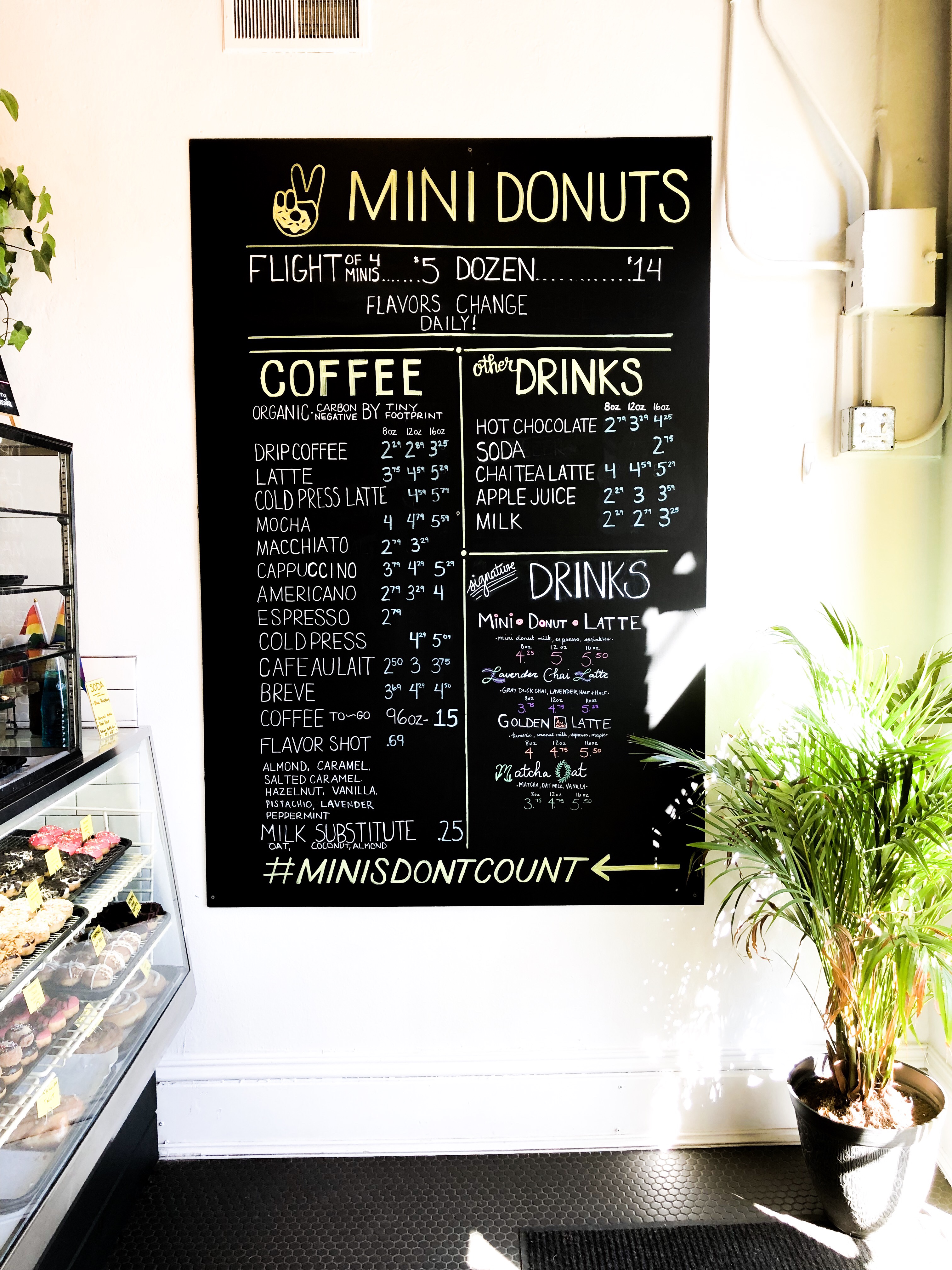 I tried a selection of minis and one regular and they were all delicious! Really unique flavors and completely satisfied my craving for donuts and coffee! Yes, they do also sell coffee drinks. It’s a win win. (Also, check out the last pic of the mini door and window that was outside by their front door! So cute!!)