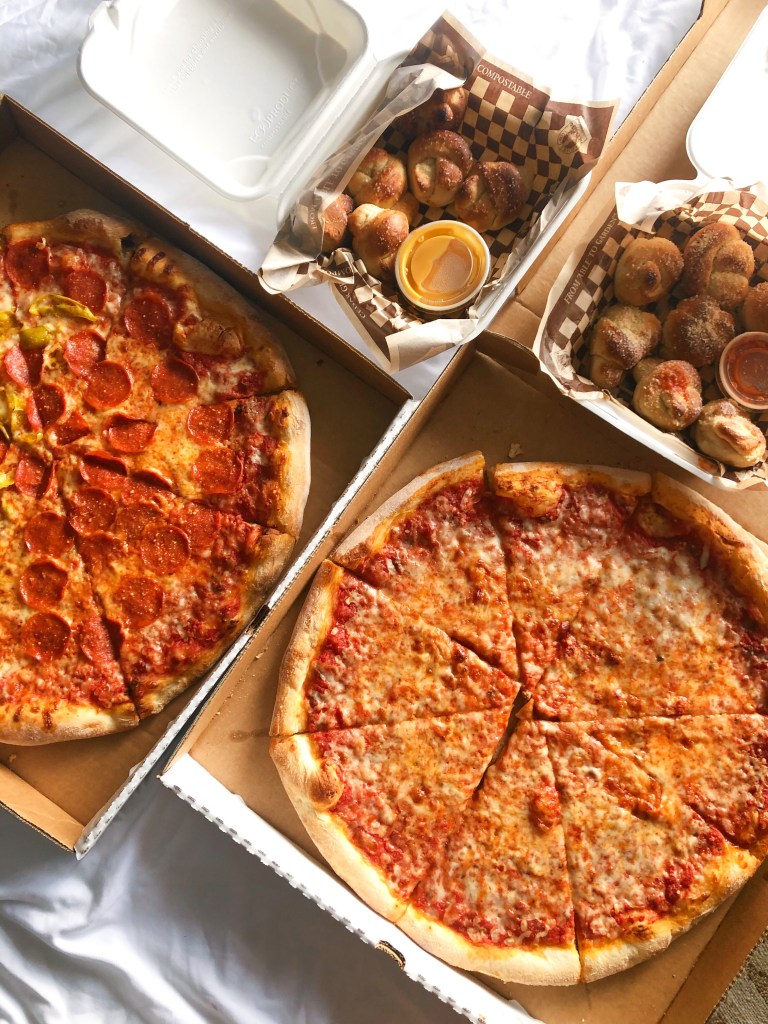 After coffee, we ordered pizza to pick up from North Fork Pizza. It was pretty good! They had these things called pretzel knots which were amaaazing. I thought better than the actual pizza!