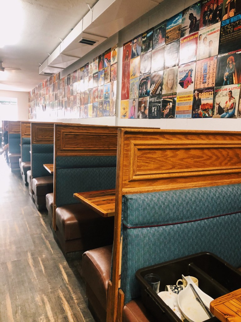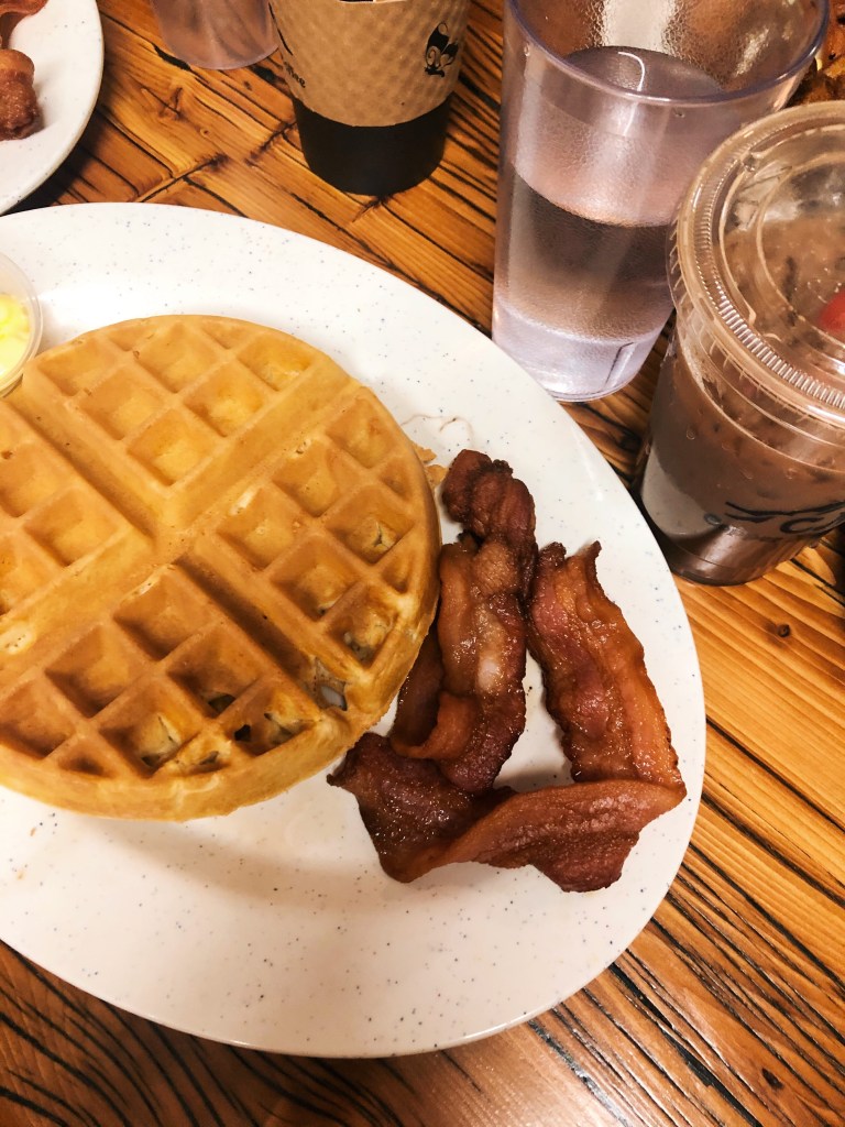 The next morning, we packed up, checked out, hit up the coffee drive thru and then went for breakfast at a diner. Thankful it was pretty quiet in there on a Monday morning. Diners are typically small and they’re much more enjoyable when they aren’t crowded. We got a few meals of Belgian waffles, bacon, eggs, and fried potatoes to share and they were absolutely delicious!