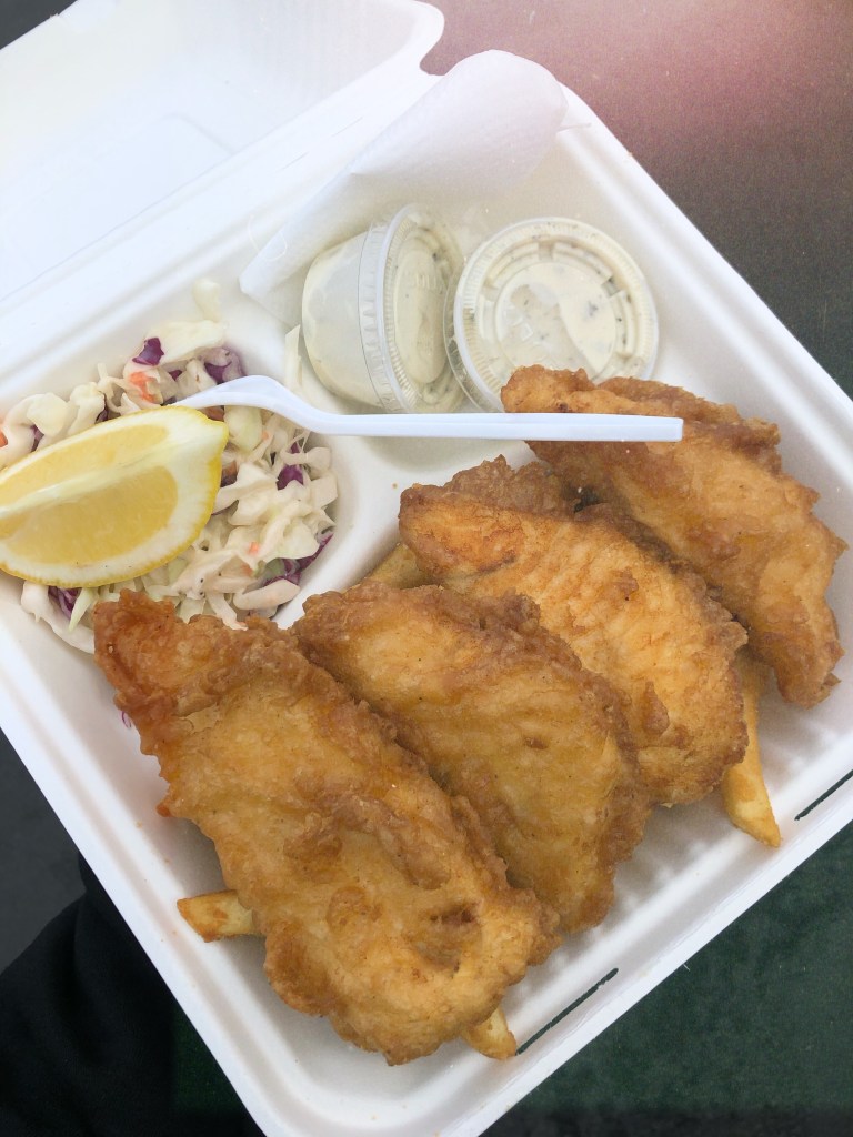 For dinner, I had my heart set on fish and chips. Originally, we were going to go to Bowpicker in Astoria, and I wasn’t the happiest when our jaunt at seaside took too long and it closed. But the place I found! It was called Ship Out and seriously had the most amazing fish and chips I’ve ever had. We had to wait a half hour for the order, but it was 100% worth it. Best. Ever.