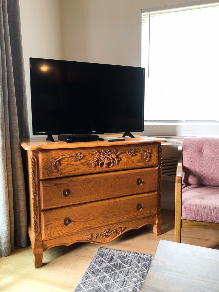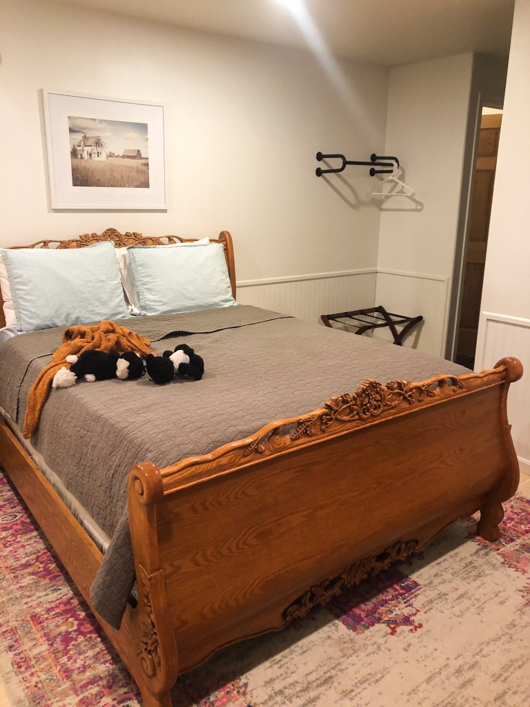 The girls room. This was a two story cabin called The Viewhouse and had three bedrooms, each with their own bathroom. The kids were so excited! Two rooms were downstairs, and then up the stairs was the kitchen, living room, and another bedroom.