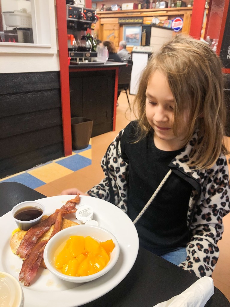 Know what she was most excited about with her meal? The peaches! They hadn’t been included on the menu so they were a surprise.