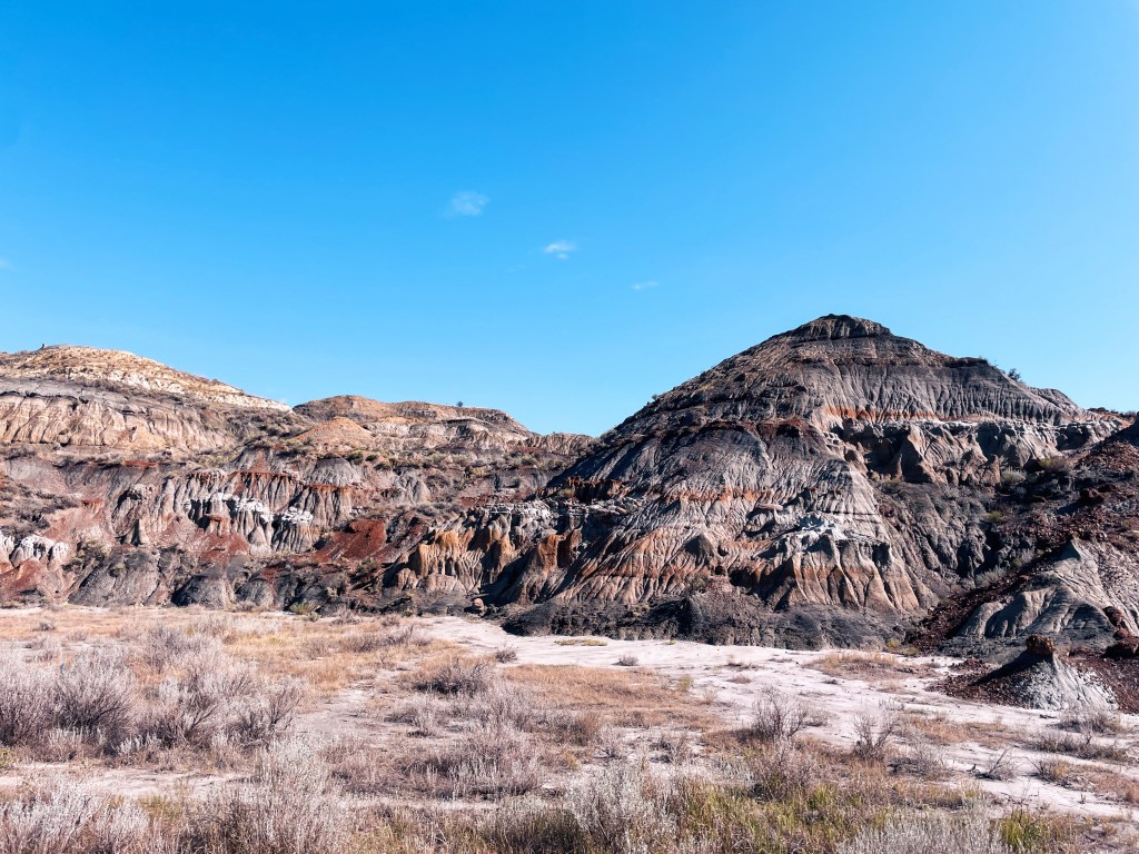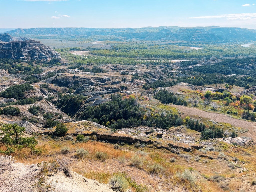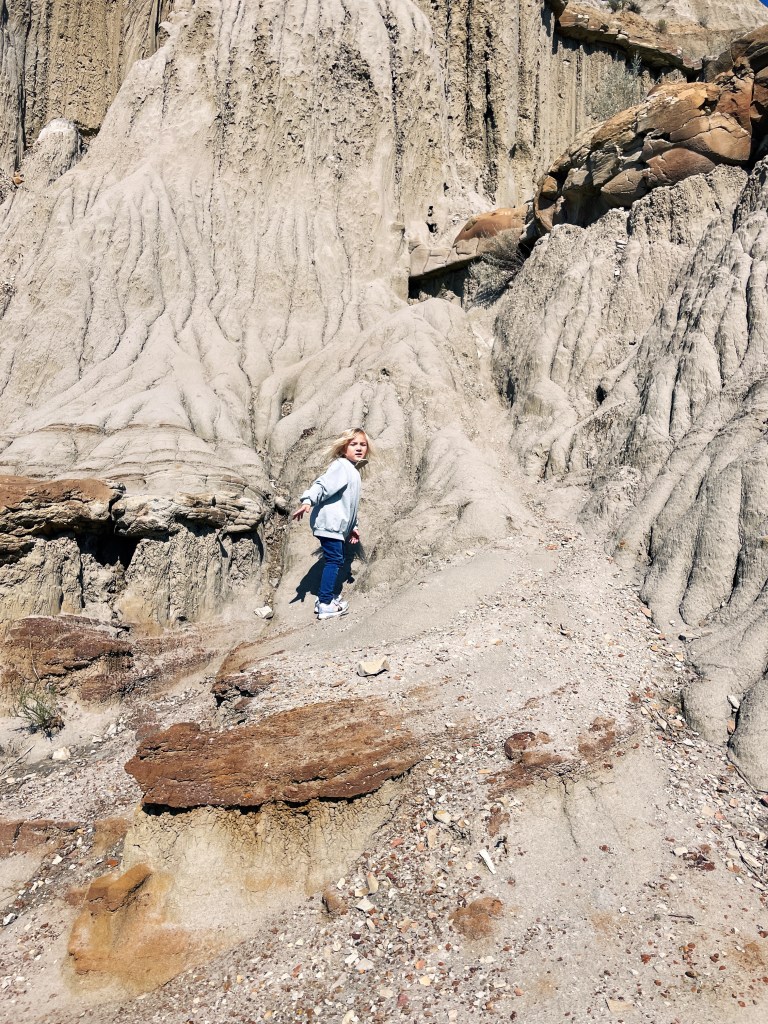 Theodore Roosevelt National Park is straight up underrated. The beauty, colored rock, bison, cliffs, rock spheres, a mixed terrain. The drama starts before you even get to the entrance of the park. Whether you enter coming from south on 85 or north, it’s the same dramatic shift of landscape. One minute you’re cruising through the plains, surrounded by fields as far as you can see, you go around a corner, and it’s as if land dropped away, revealing a whole new world. It’s stunning. No matter how often I see it.